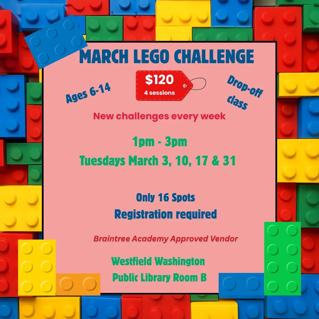 Students use LEGO bricks to solve creative building challenges while working within specific limitations and constraints. Each week presents a new problem to design, test, and improve, helping kids develop engineering thinking, problem-solving skills, and resilience through play.